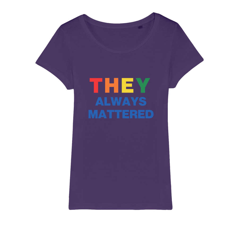 They Always Mattered Organic Women's T-Shirt, a super soft, sustainable garment made from 100% cotton. Get your “They Always Mattered” t-shirt now from Intersectional UK. Intersectional UK is a safe space for everyone to express their identity without judgment. And tell them…Someone’s identity matters, so their pronouns matter.